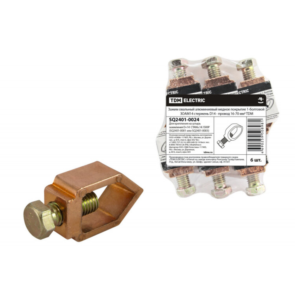Доставка Зажим овальный алюминиевый медное покр. 1-болтовой ЗОАМ14 стержень D14 - провод 16-70 мм2 SQ2401-0024