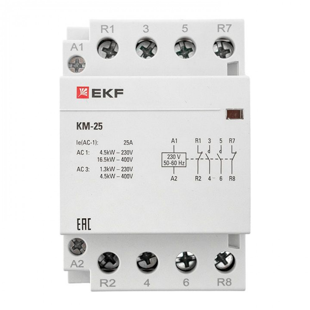 Контактор модульный КМ 25А 2NО+2NC (3 мод.) PROxima km-3-25-22, Пускатель и контактор магнитный