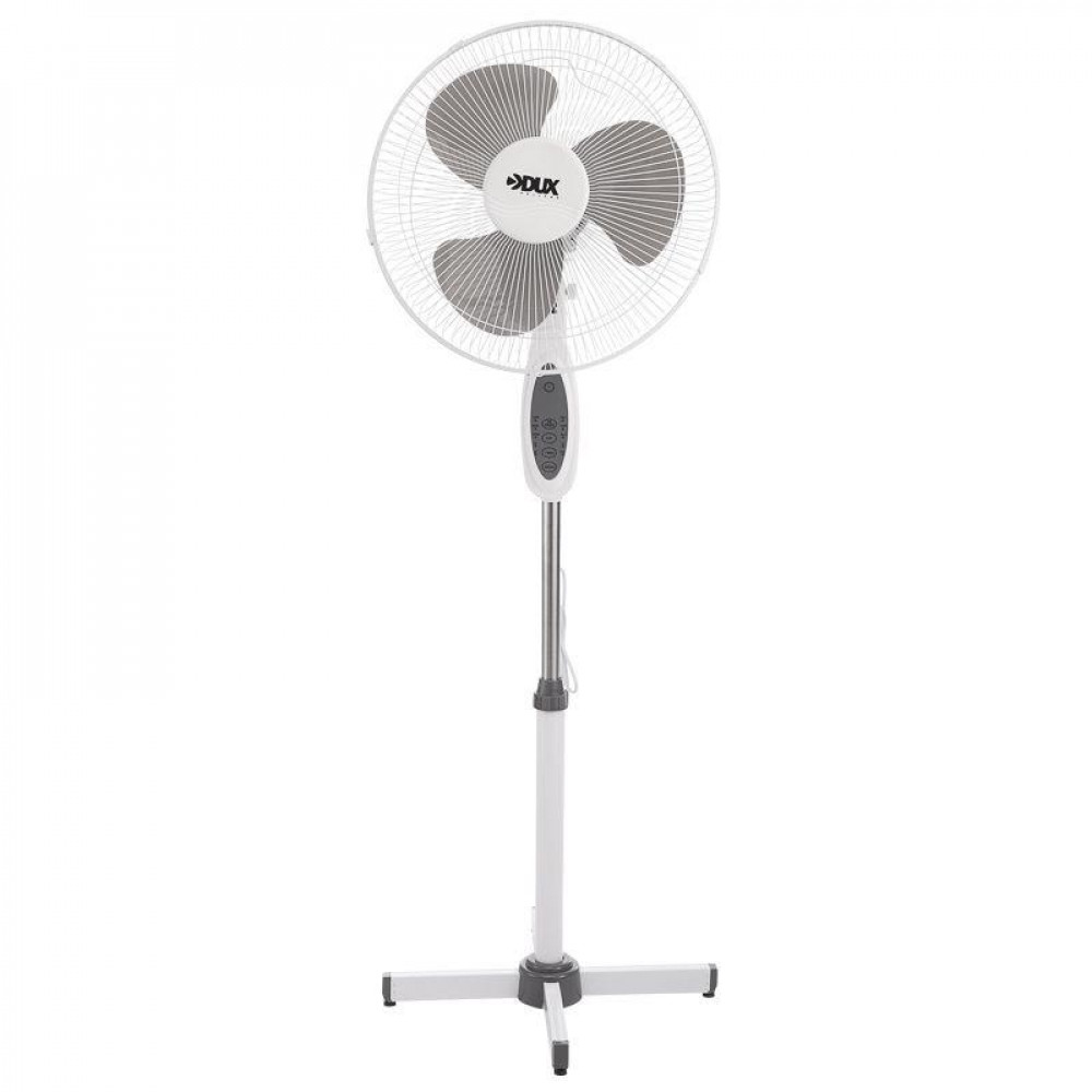 Напольный вентилятор DUX DX-1601R с пультом и таймером, 40 Вт, 220V, цвет белый, серый 60-0209 изготовлен из пластика высокого качества и снабжен дополнительно пультом управления.