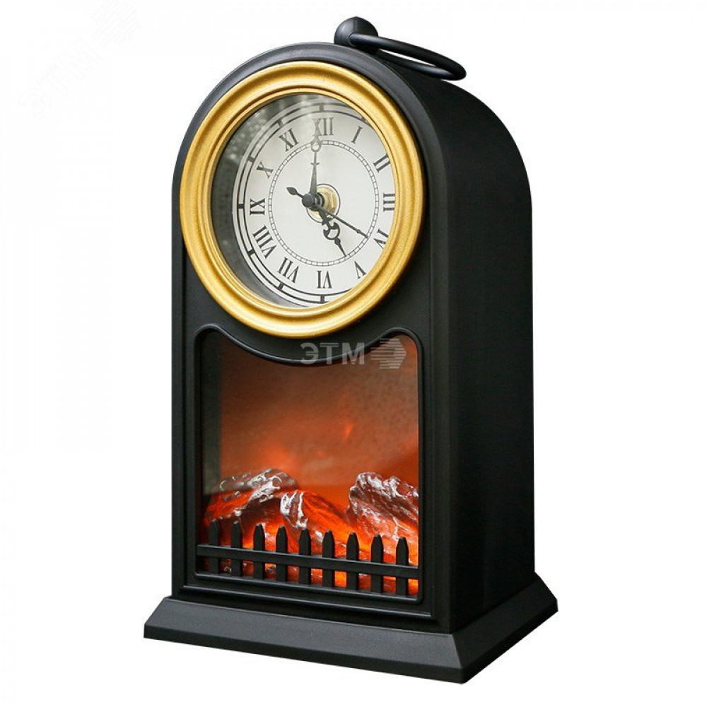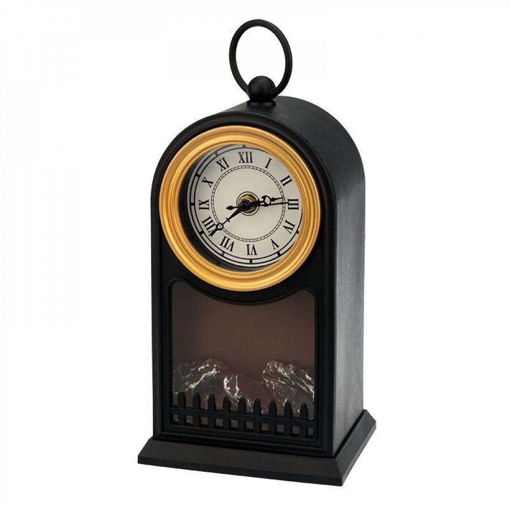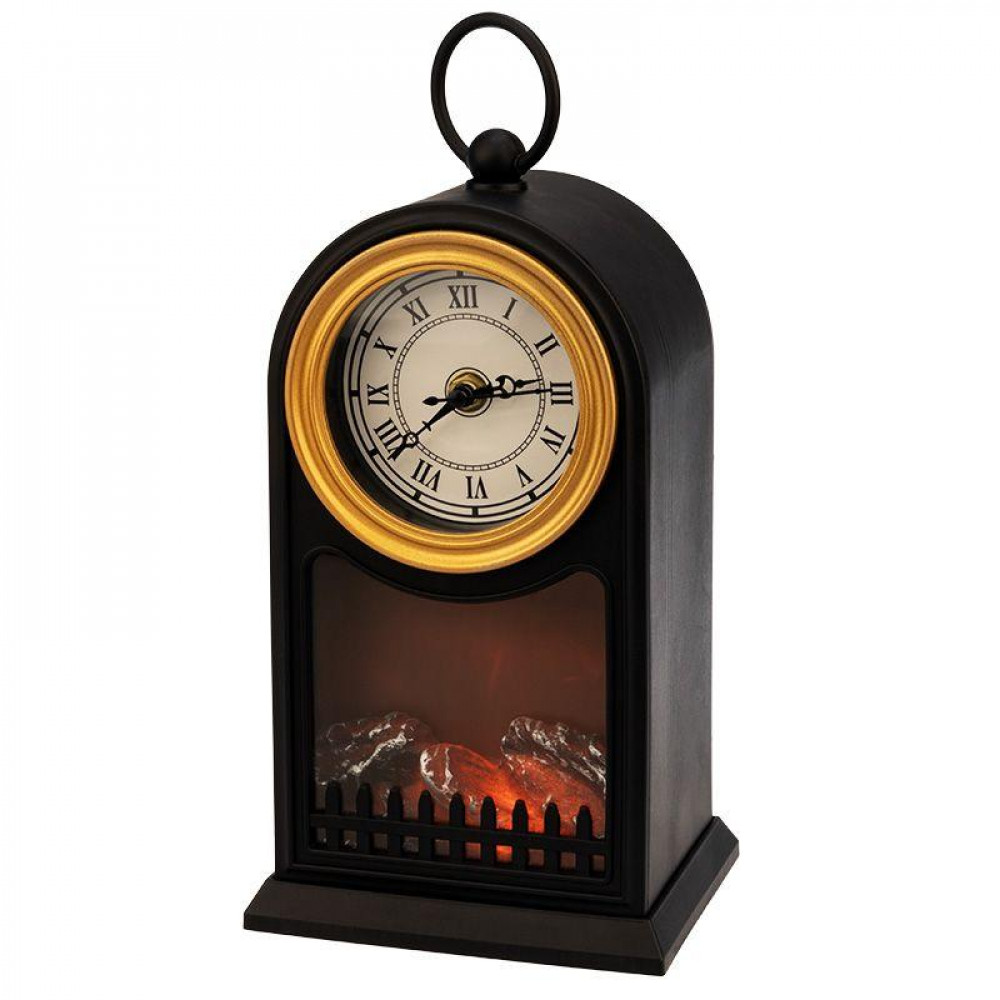 Доставка Светодиодный камин Старинные часы с эффектом живого огня 14,7x11,7x25 см, черный, батарейки 2хС (не в комплекте) USB 511-020