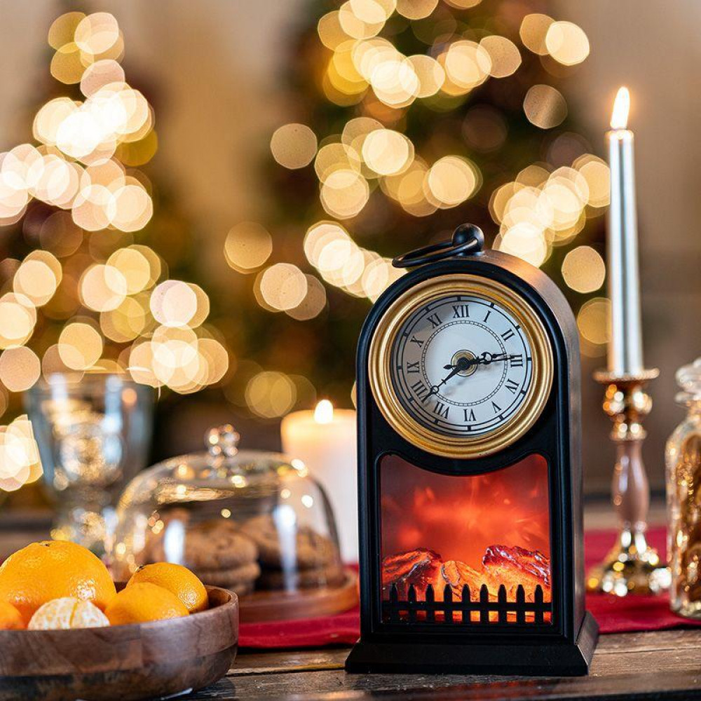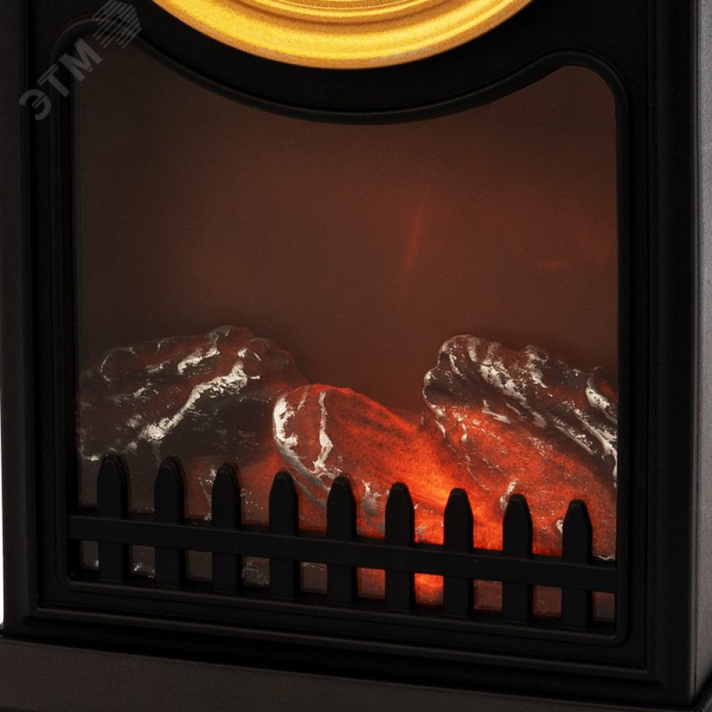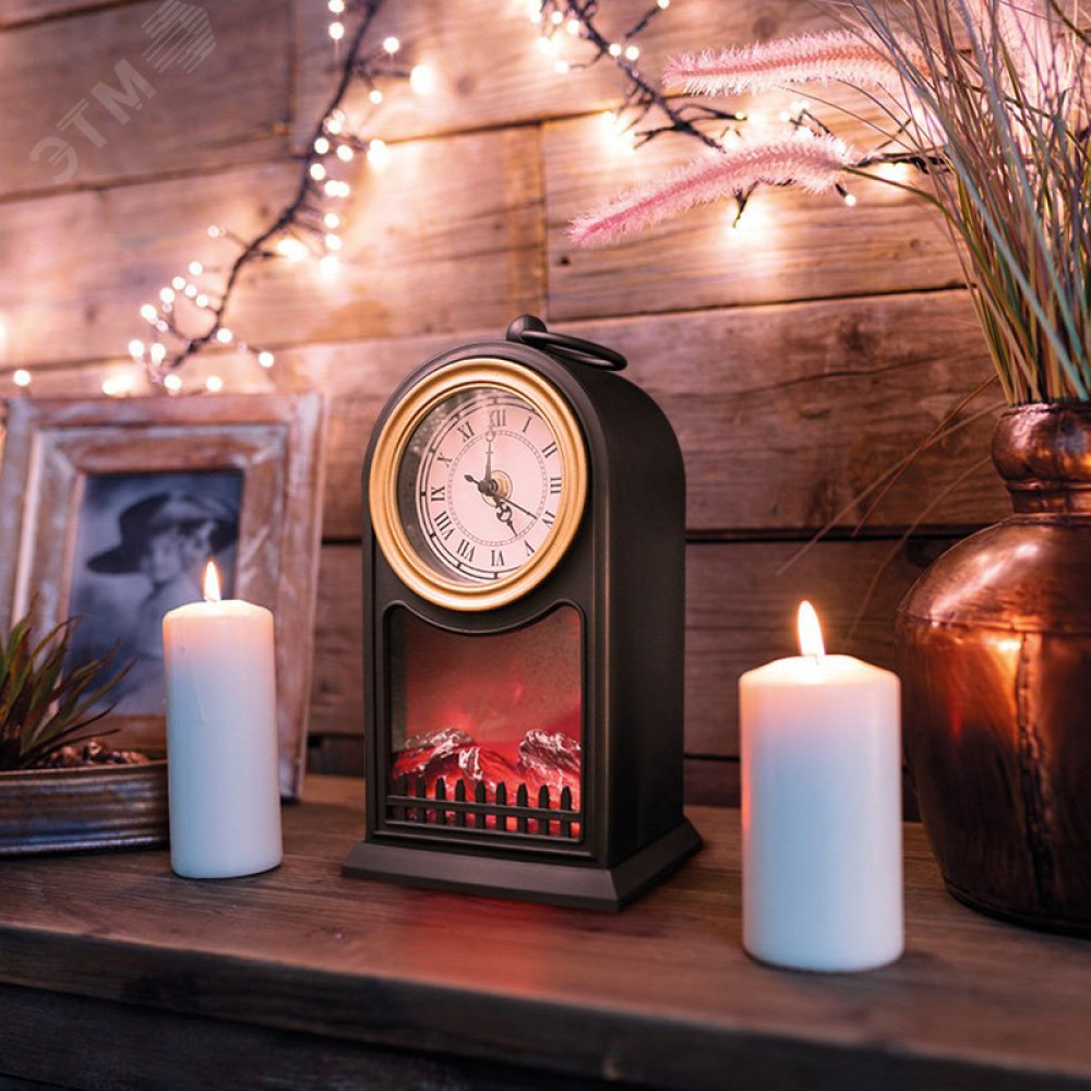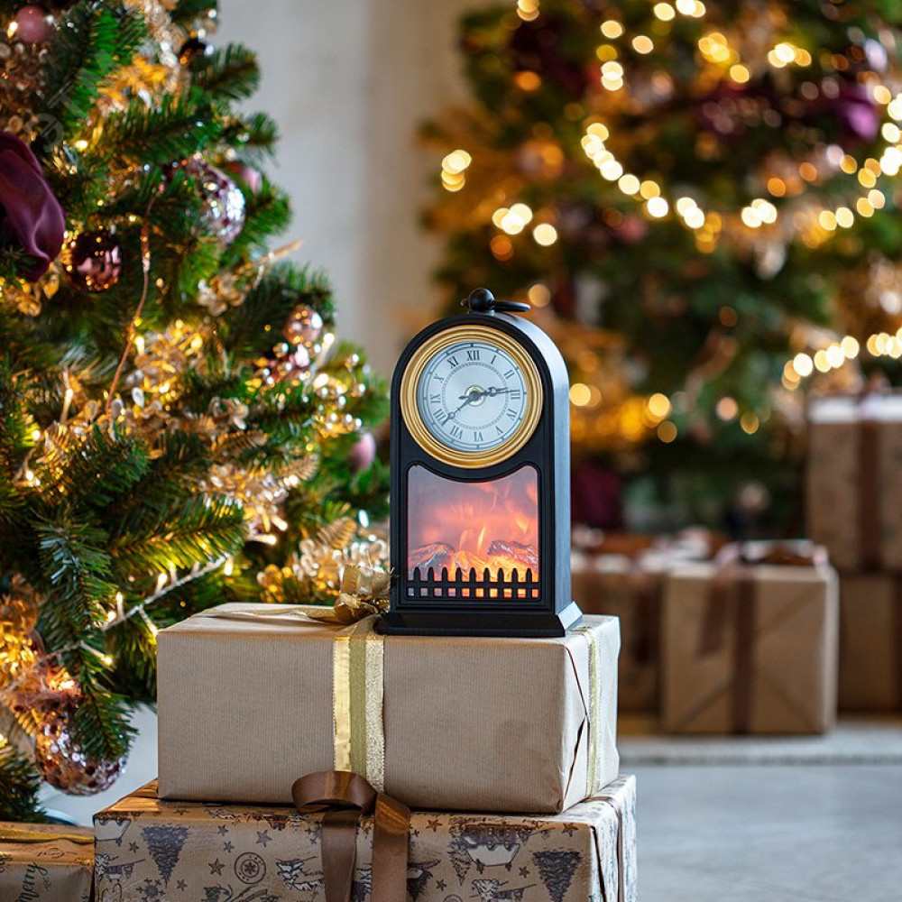 Доставка Светодиодный камин Старинные часы с эффектом живого огня 14,7x11,7x25 см, черный, батарейки 2хС (не в комплекте) USB 511-020