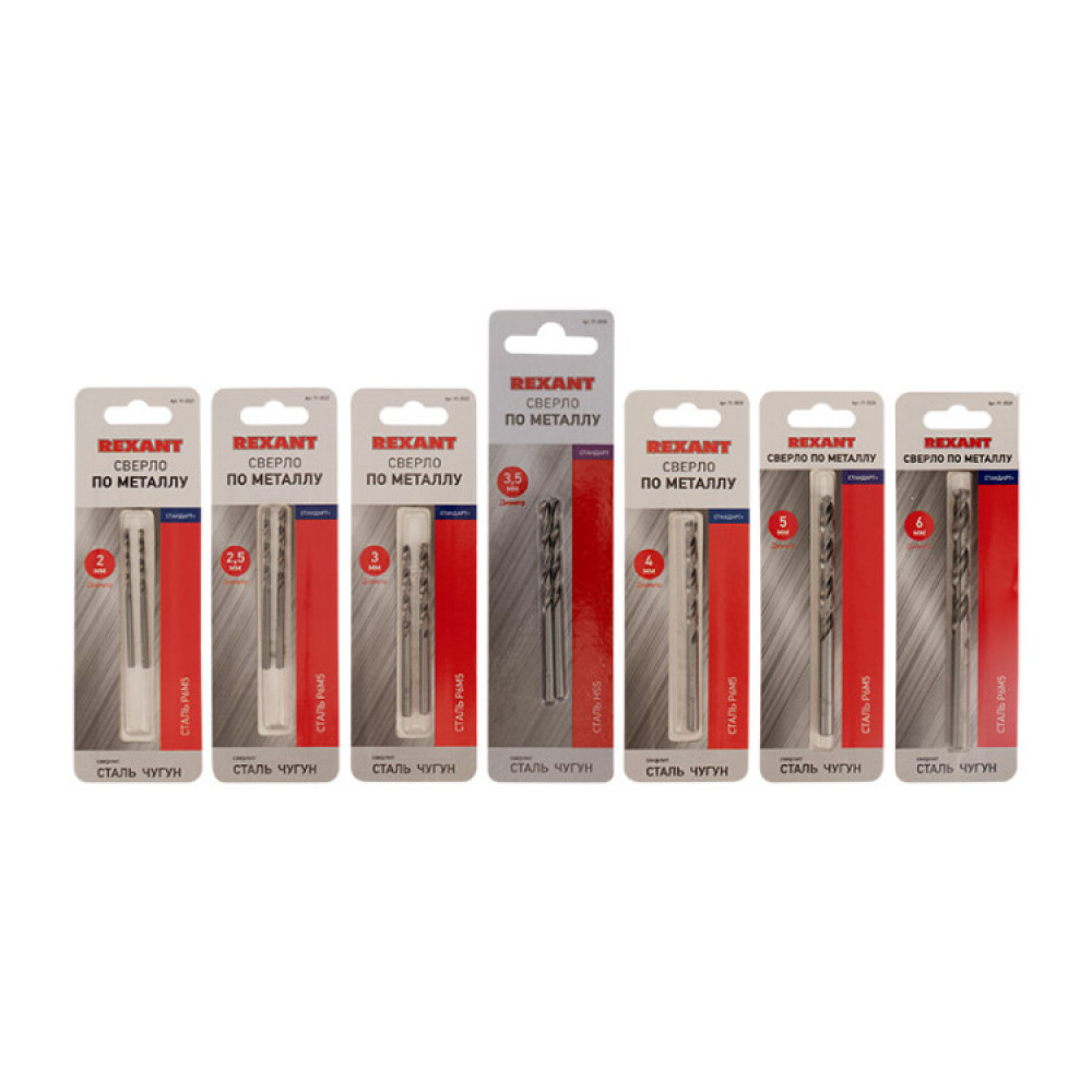 Описание Набор сверл по металлу Слесарь Standart (P6M5) диаметр 2-2,5-3-3,5-4-5-6 мм (7 шт.) 91-0594
