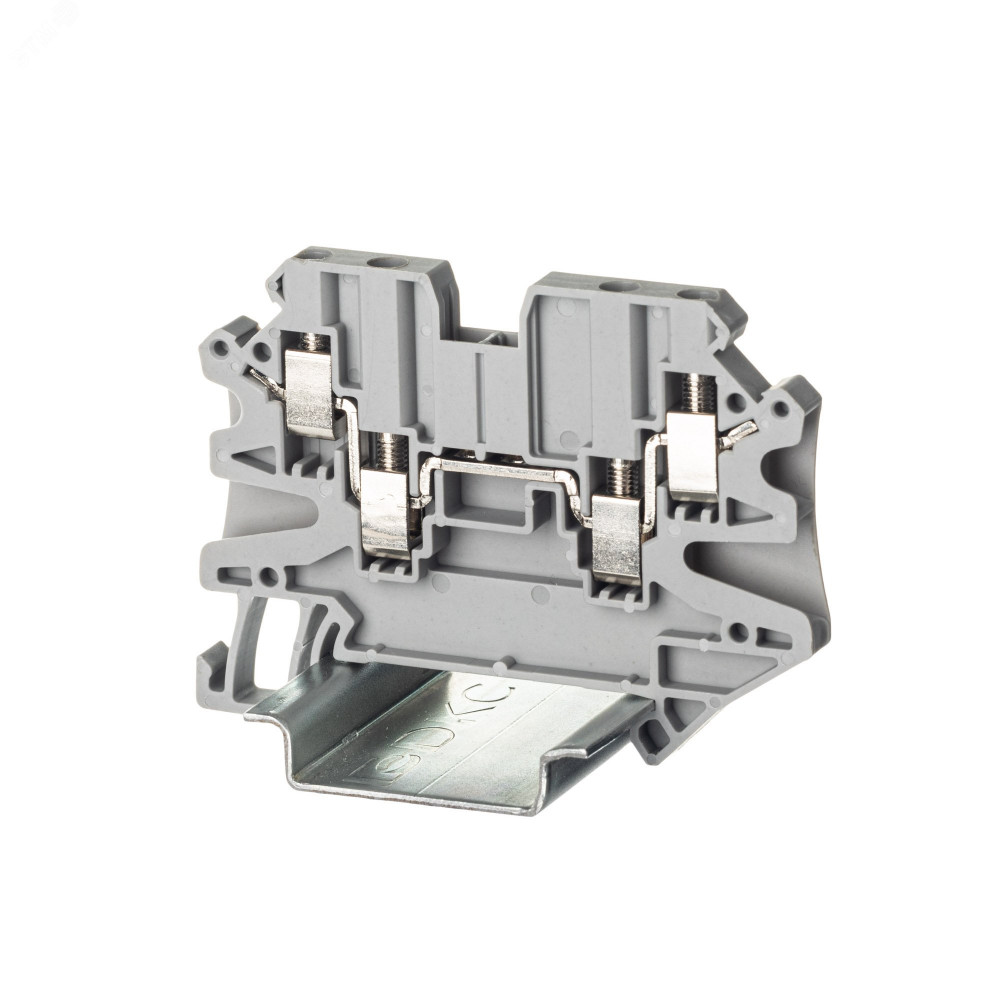 Проходная клемма, 4 точки подключения, тип фиксации провода: винтовой, номинальное сечение: 2,5 мм кв., 24A, 1000V, ширина: 5,2 мм, цвет: серый, тип монтажа: DIN35