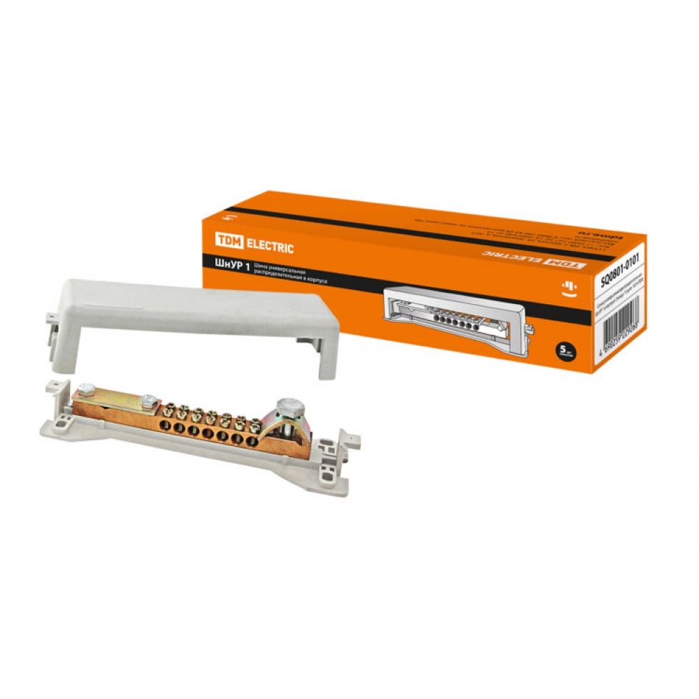Шина универсальная распределительная ШнУР 1 в корпусе 2 ввода 7 групп 160 А SQ0801-0101, Шина медная