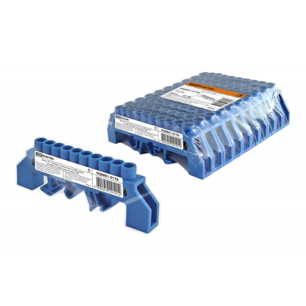 Доставка Шина "N" нулевая в изоляторе на DIN-рейку 8x12мм 10 групп инд. стикер SQ0801-0178