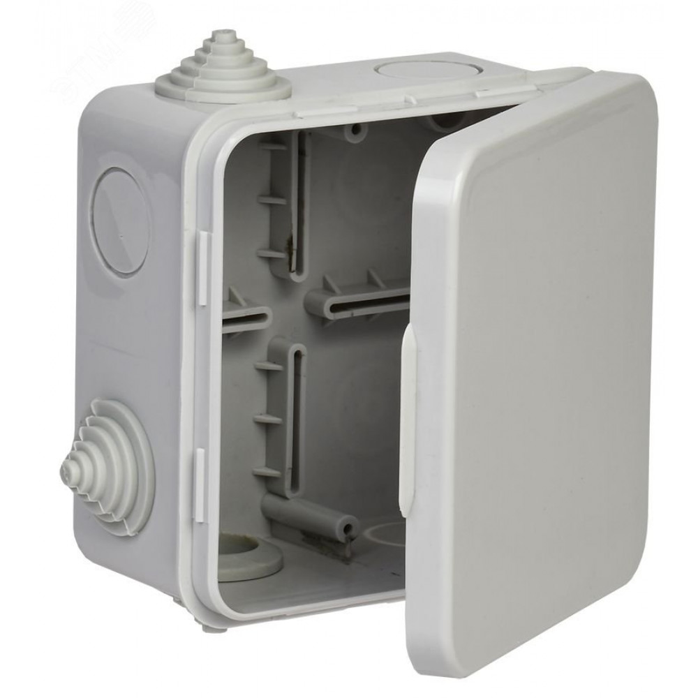 В комплект коробки входят ступенчатые сальники (гермовводы) для присоединения гофрированных или гладких труб.