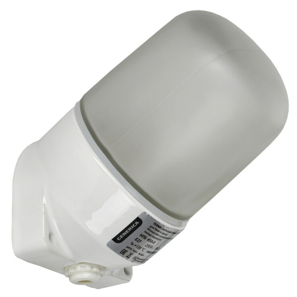 Светильник НПБ серии 450 торговой марки GENERICA предназначен для применения в бытовых помещениях с высоким содержанием пыли и влаги, а так же с предельной температурой окружающей среды до 140 °С, например в банях и саунах.