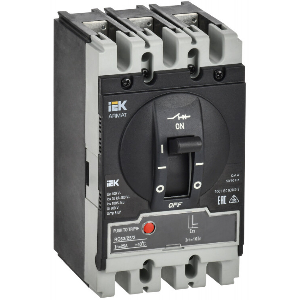 Описание ARMAT Автоматический выключатель лит. корпус 3P S 35кА 25А э/м рег. AR-MCCB-3S-035-0025A-MTUC