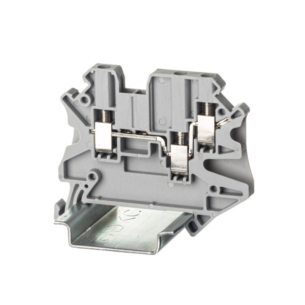 Клемма проходная, винтовой зажим, 3 точки подключения, 2.5 кв.мм, серая TUR-2.5-TWIN, Клемма на DIN-рейку