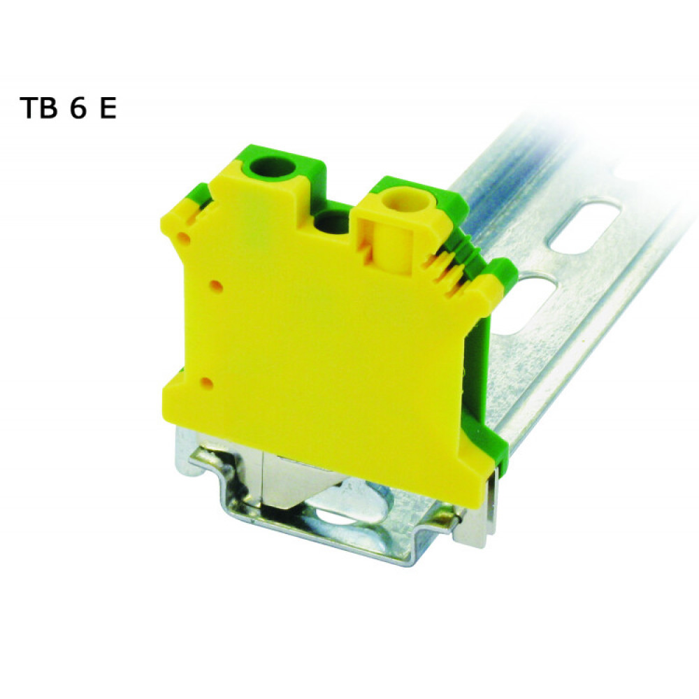 Клемма винтовая проходная 2 контакта 6 мм2, заземляющая TB6E, Клемма на DIN-рейку