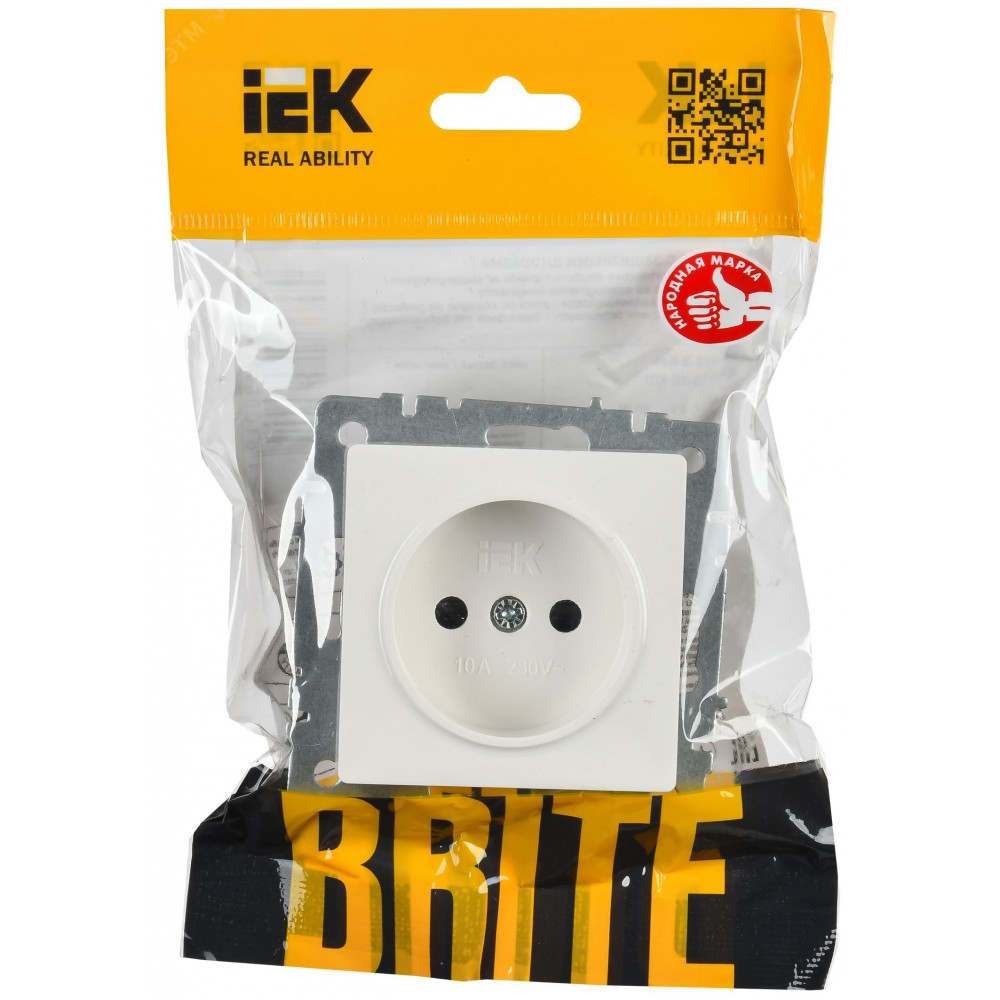 BRITE Роз. без з/к с з/ш 10А РСш10-2-БрБ бел. BR-R13-10-K01, Розетка скрытого монтажа