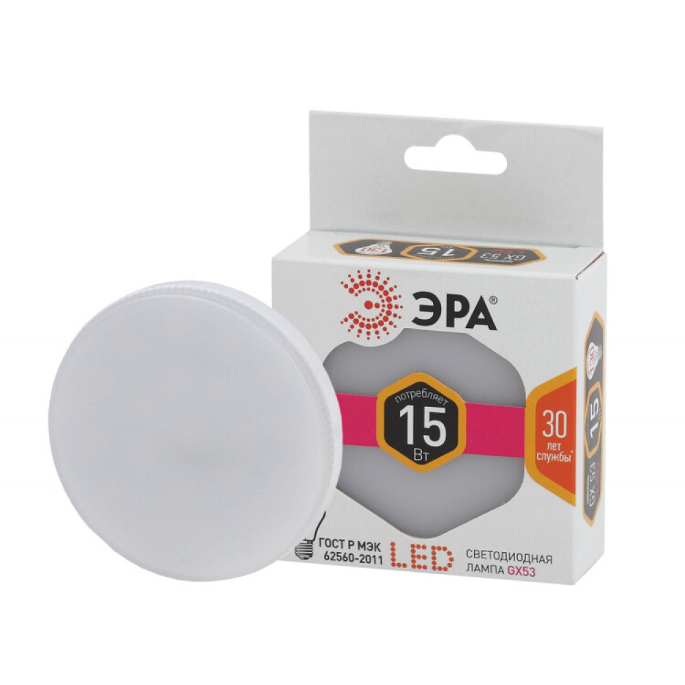 Лампочка светодиодная GX53 15Вт таблетка теплый белый свет LM Б0062266, Лампа светодиодная