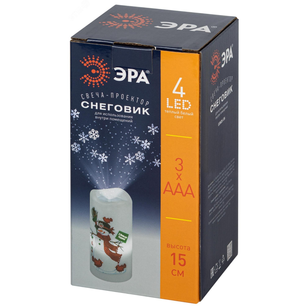 Доставка Светодиодный проектор EGNDS -SN светильник новогодний Свеча Снеговик теплый свет 4 LED 3*AAA 15 см Б0060552