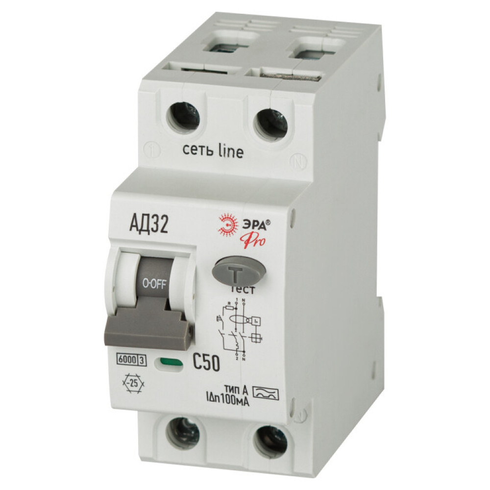 Описание АВДТ 6кА PRO D326M2C50А100 АД-32 электромеханическое 1P+N C50 100мА тип А Б0059092