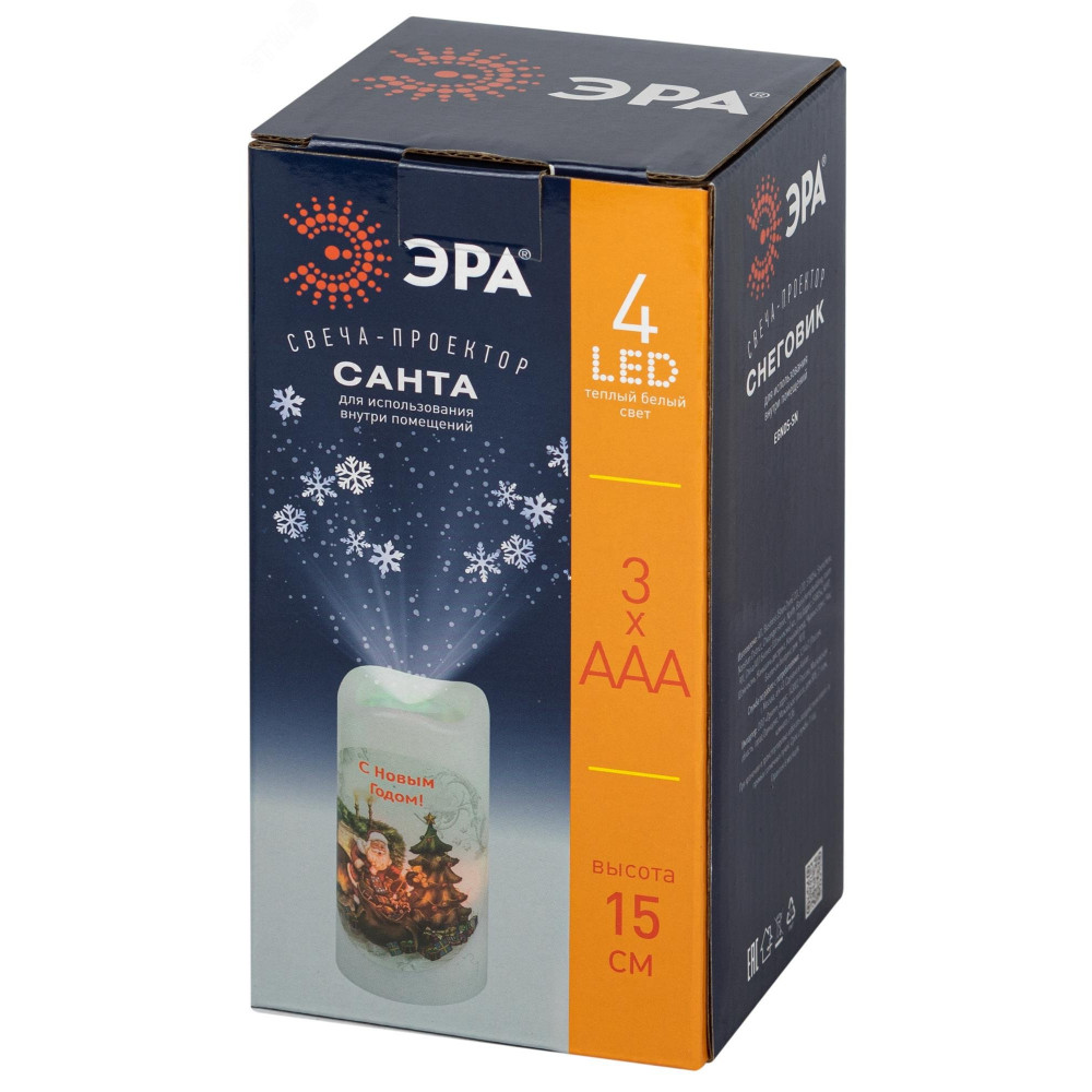 Описание Светодиодный проектор EGNDS -SK светильник новогодний Свеча Санта теплый свет LED 3*ААА 15 см Б0060551