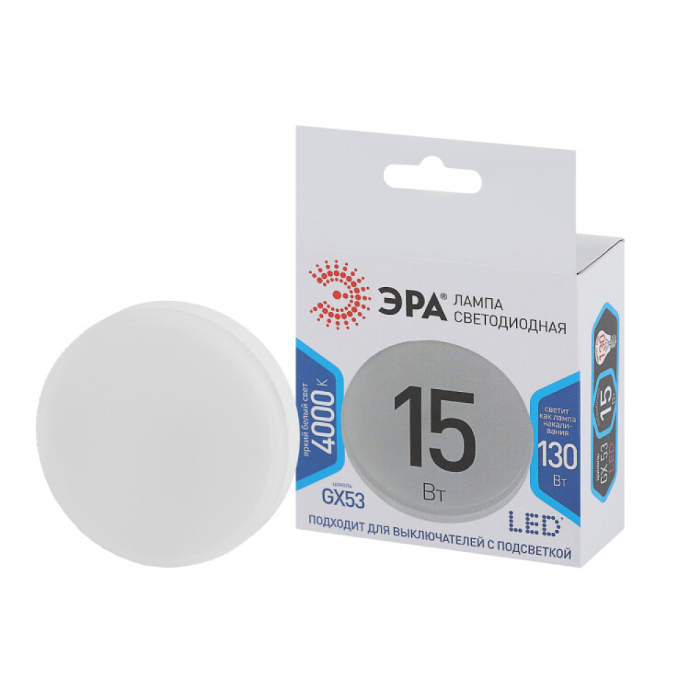 Описание Лампочка светодиодная STD GX53 15Вт таблетка нейтральный белый свет LM Б0062269