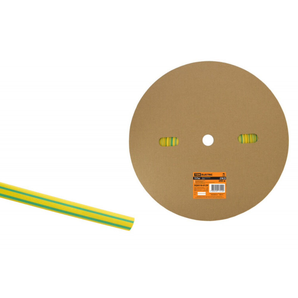 Термоусаживаемая трубка ТУТнг 4/2 желто-зеленая (200 м/ролл) SQ0518-0129, Изделие термоусаживаемое