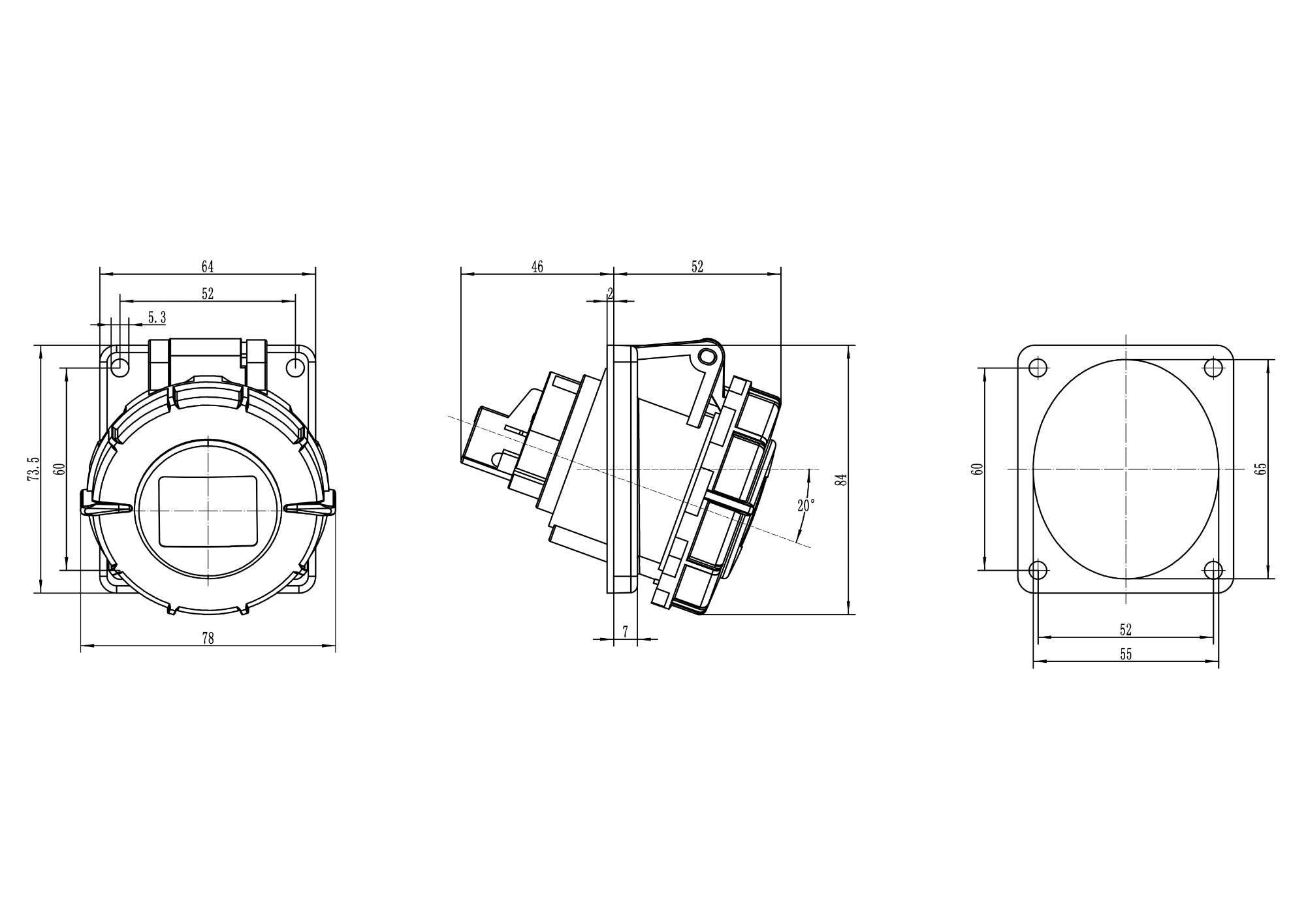 Розетка панельная с наклоном IP67 16А 2P+E 230В DIS4181663, Разъем силовой и модуль комбинируемый