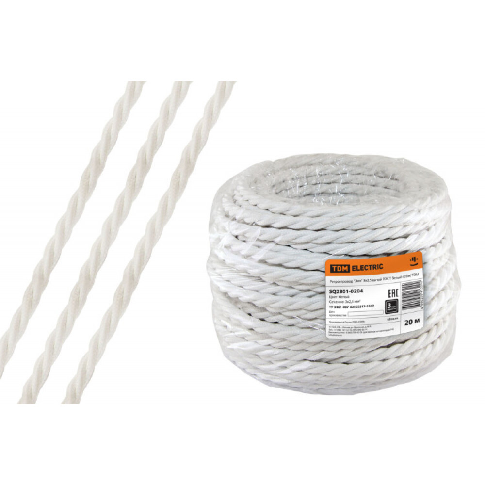 Ретро провод "Эко" 3х2,5 витой ГОСТ белый (20м) SQ2801-0204, Кабель и провод силовой для стационарной прокладки