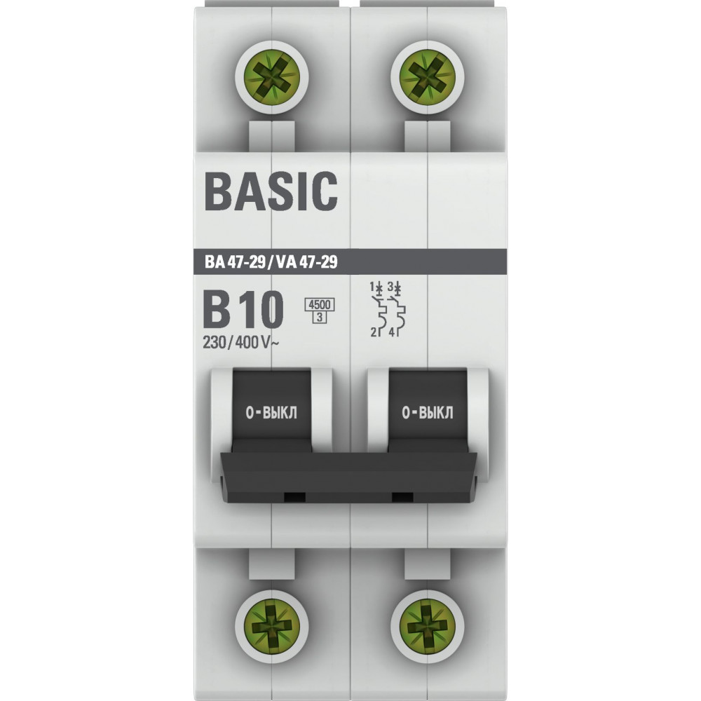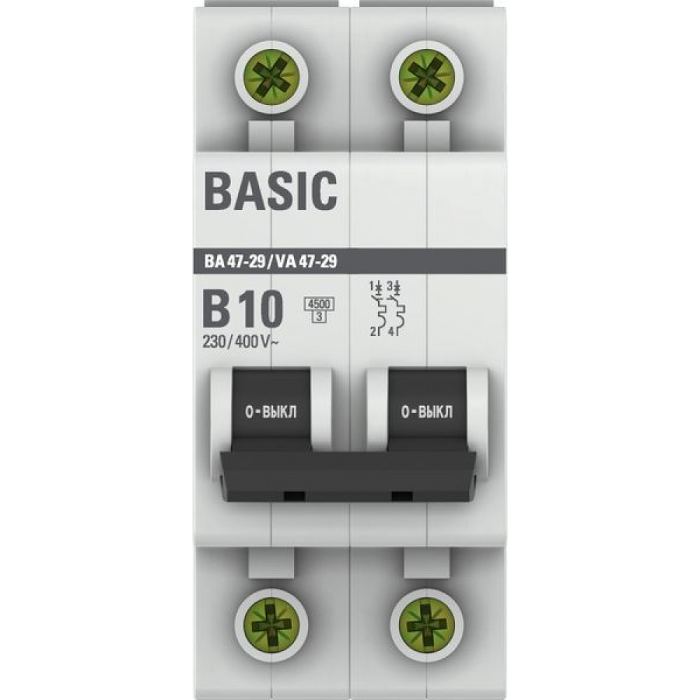 Автоматический выключатель 2P 10А (B) 4,5кА ВА 47-29 Basic mcb4729-2-10-B, Выключатель автоматический модульный