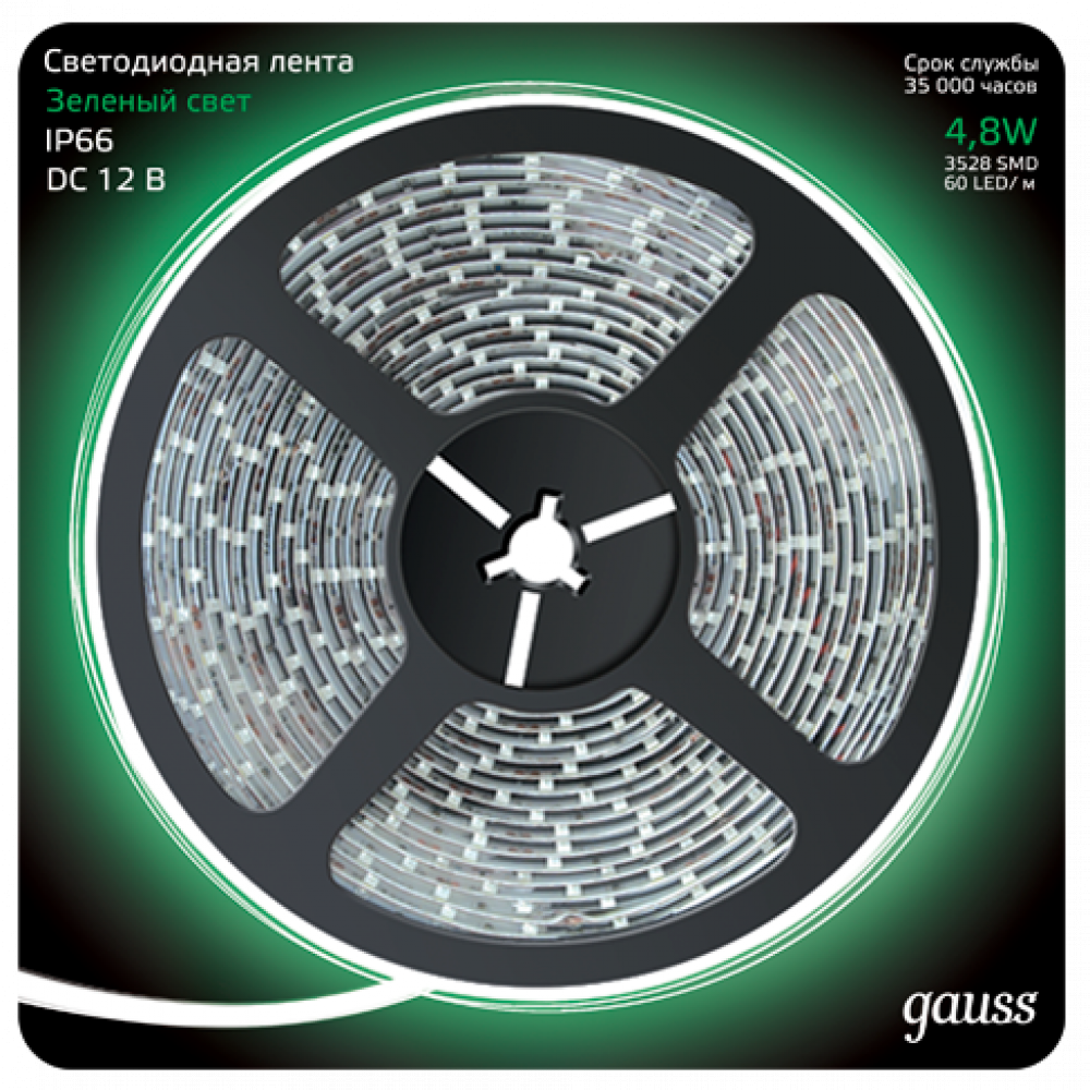 Лента LED 2835/60-SMD 4.8W 12V DC зеленый IP66 (блистер 5м) 311000605, Лента светодиодная цветная