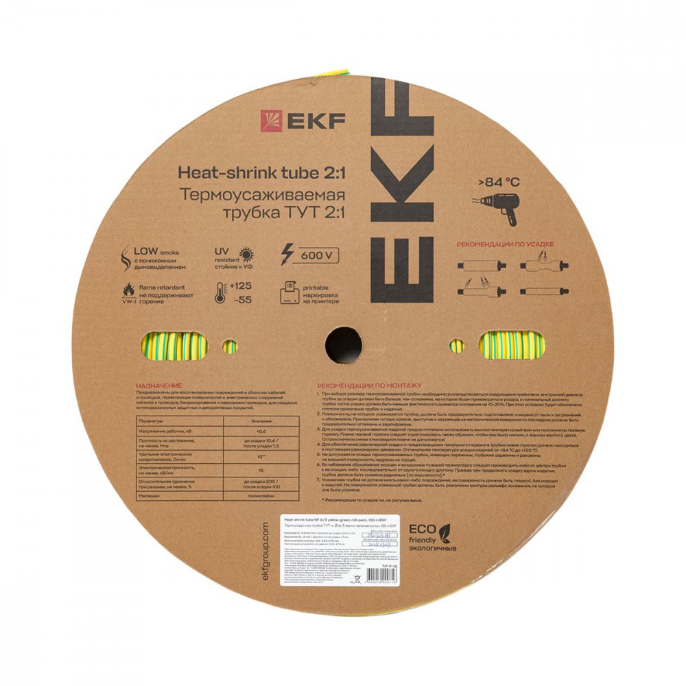 Описание Термоусаживаемая трубка ТУТ нг 6/3 жел-зел рулон PROxima tut-6-yg