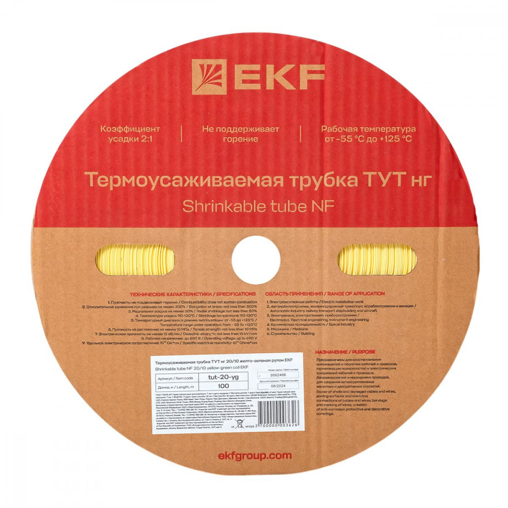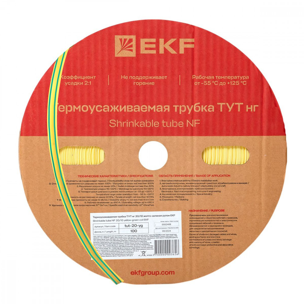 Термоусаживаемая трубка ТУТ нг 20/10 жел-зел рулон PROxima tut-20-yg, Изделие термоусаживаемое