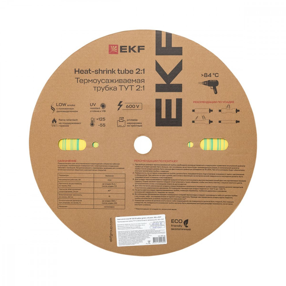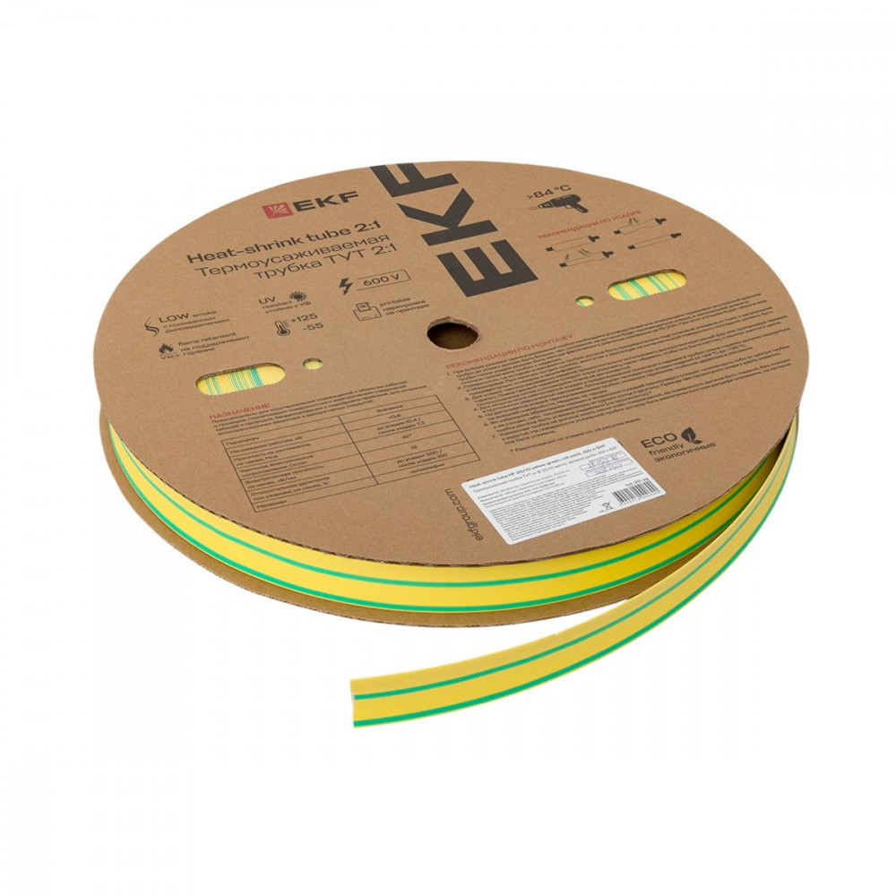 Описание Термоусаживаемая трубка ТУТ нг 20/10 жел-зел рулон PROxima tut-20-yg