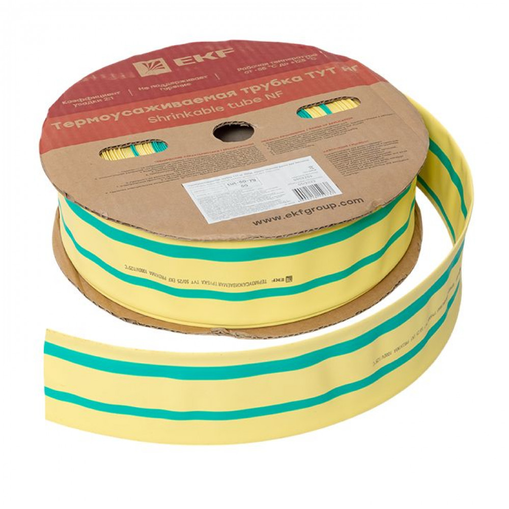 Описание Термоусаживаемая трубка ТУТ нг 50/25 жел-зел рулон PROxima tut-50-yg