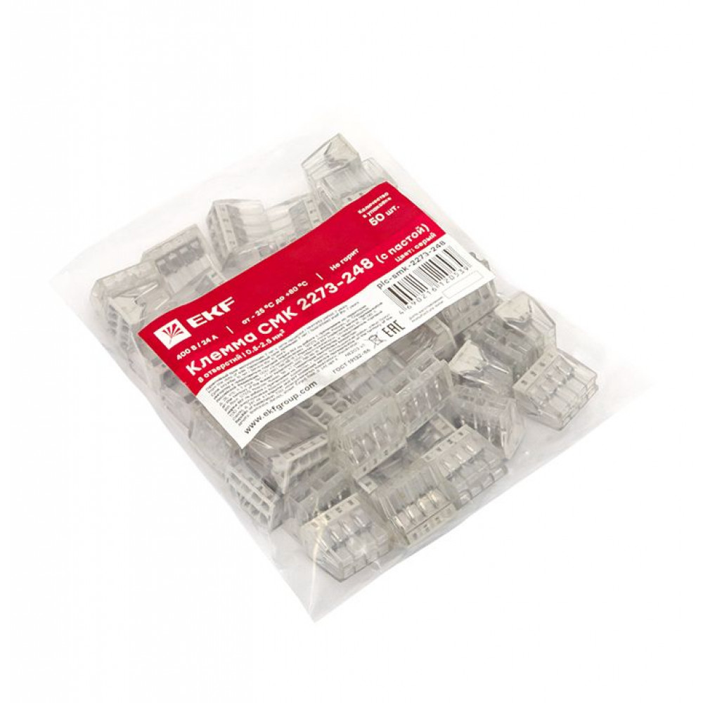 Строительно-монтажная клемма СМК 2273-248 (с пастой) 8 отверстий 0,5-2.5мм2 (50шт.) PROxima plc-smk-2273-248, Строительно-монтажная клемма и скрутка