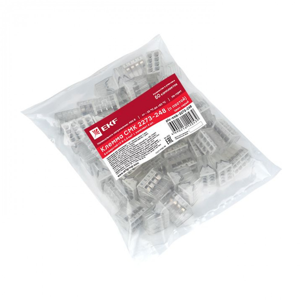 Описание Строительно-монтажная клемма СМК 2273-248 (с пастой) 8 отверстий 0,5-2.5мм2 (50шт.) PROxima plc-smk-2273-248