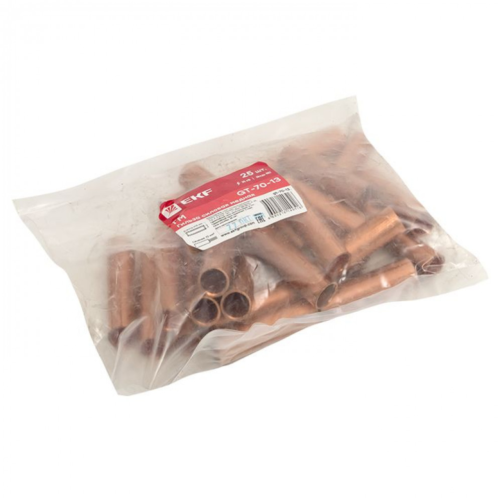 Гильзы медные GT (ГМ) EKF PROxima изготавливаются из цельнотянутой медной трубы марки М2 и имеют сквозную конструкцию. Гильзы производятся без покрытия (климатическое исполнение УХЛЗ).