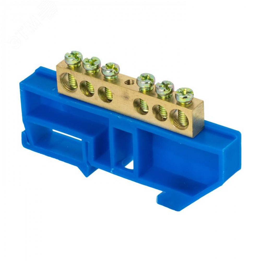 Шина "0" N (8х12мм) 6 отверстий латунь синий изолятор на DIN-рейку PROxima sn0-125-6-d, Блок клеммный и нулевая шина