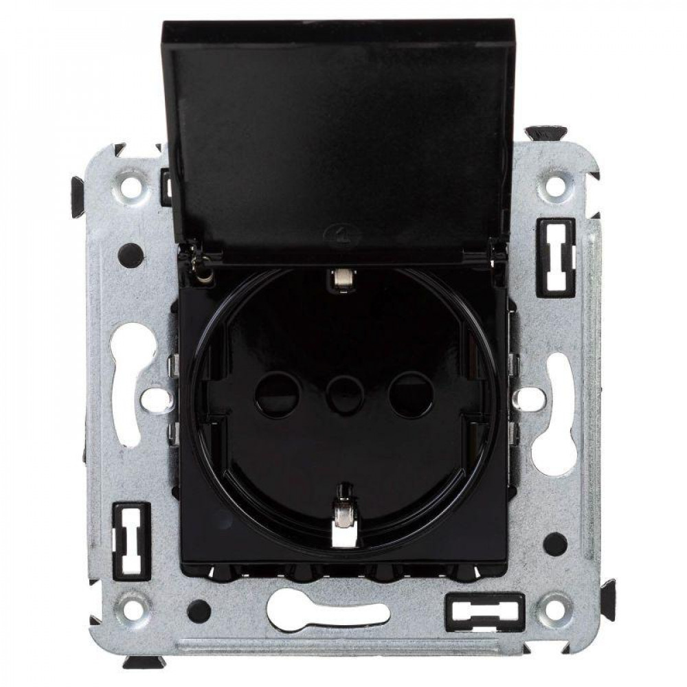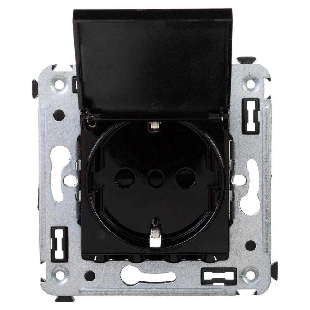 Розетка с крышкой в стену, 2P+E, с з/ш, "Avanti", "Черный квадрат" 4402013, Розетка для монтажа в кабель-канал