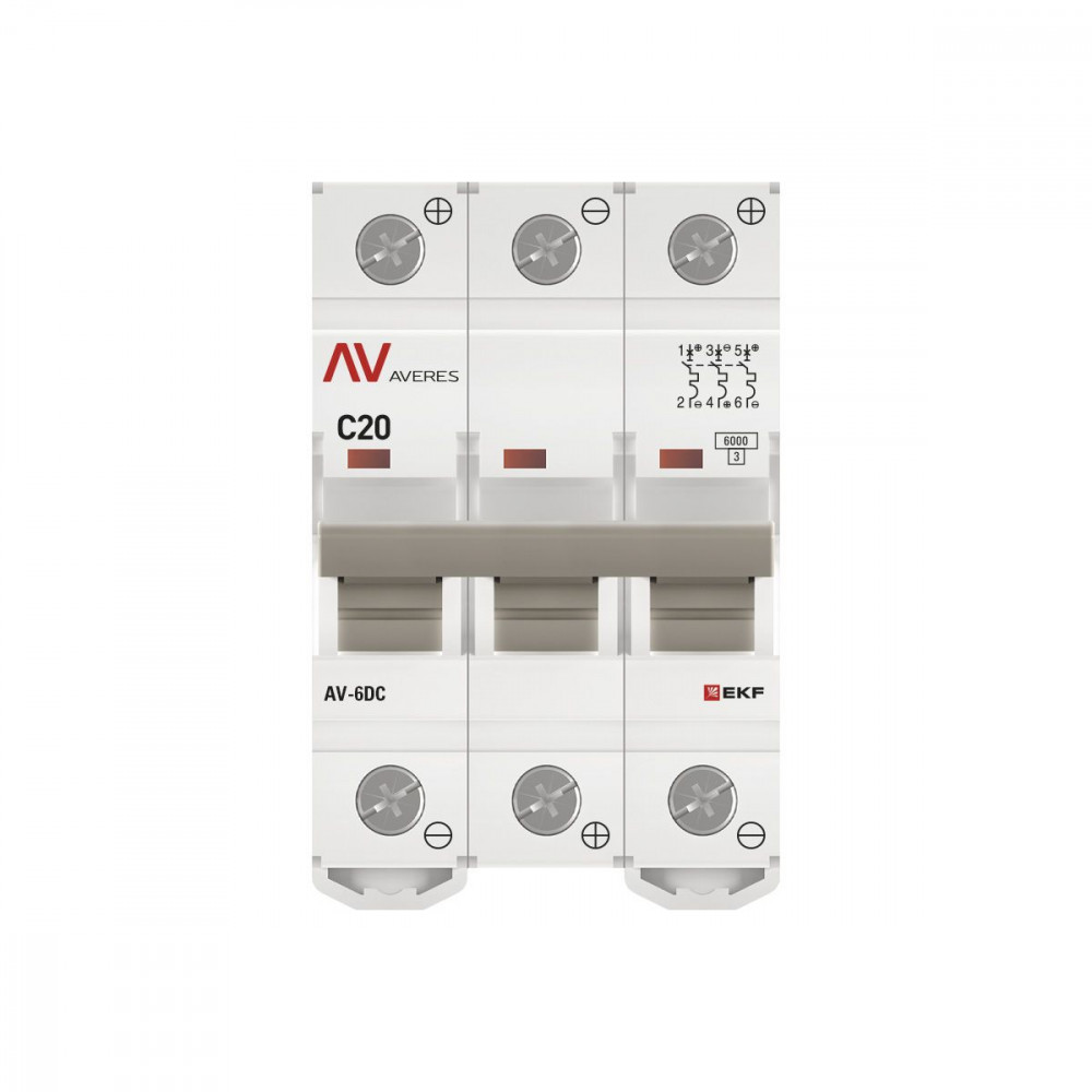 mcb6-DC-3-20C-av Выключатель автоматический AV-6 DC 3P 20A (C) 6kA EKF AVERES(кр.1шт), Выключатель автоматический модульный
