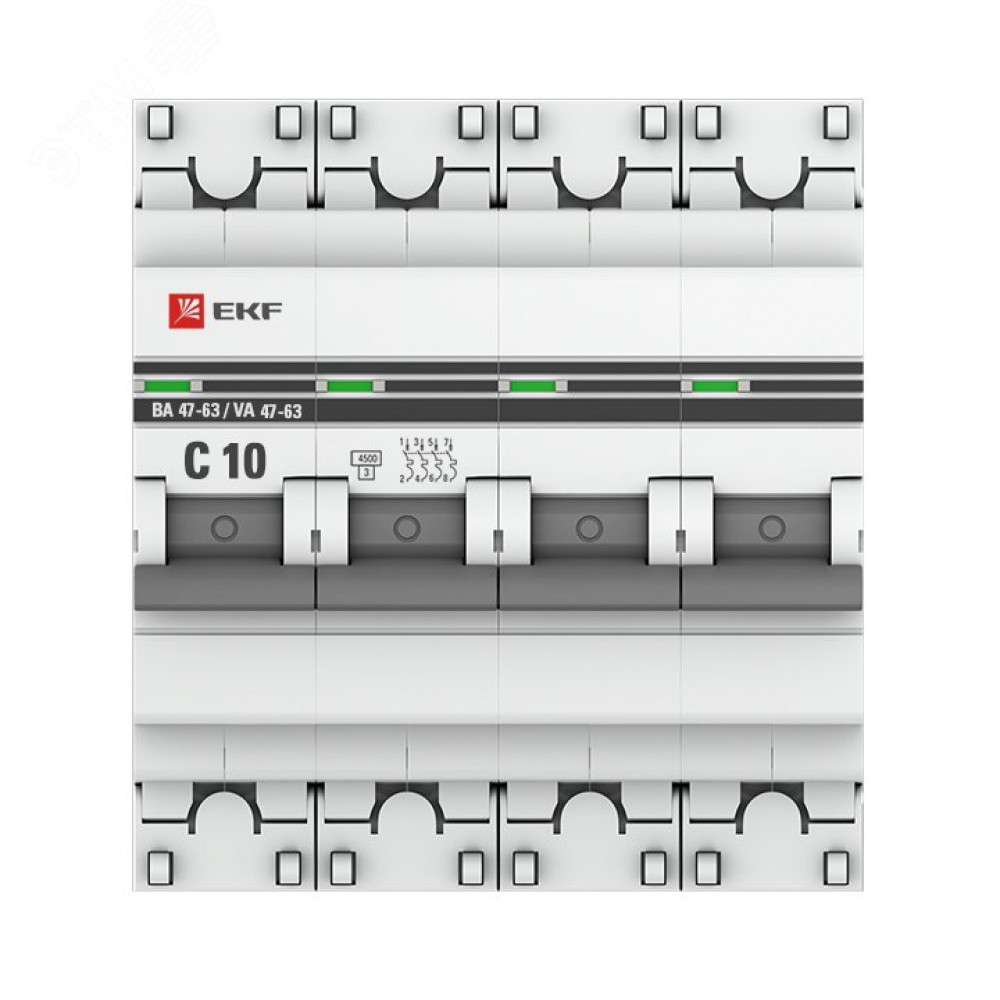Описание Автоматический выключатель 4P 10А (C) 4,5kA ВА 47-63 PROxima mcb4763-4-10C-pro
