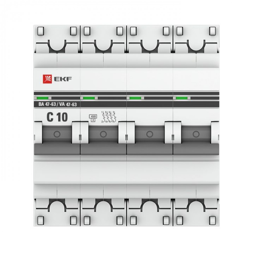 Автоматический выключатель 4P 10А (C) 4,5kA ВА 47-63 PROxima mcb4763-4-10C-pro, Выключатель автоматический модульный