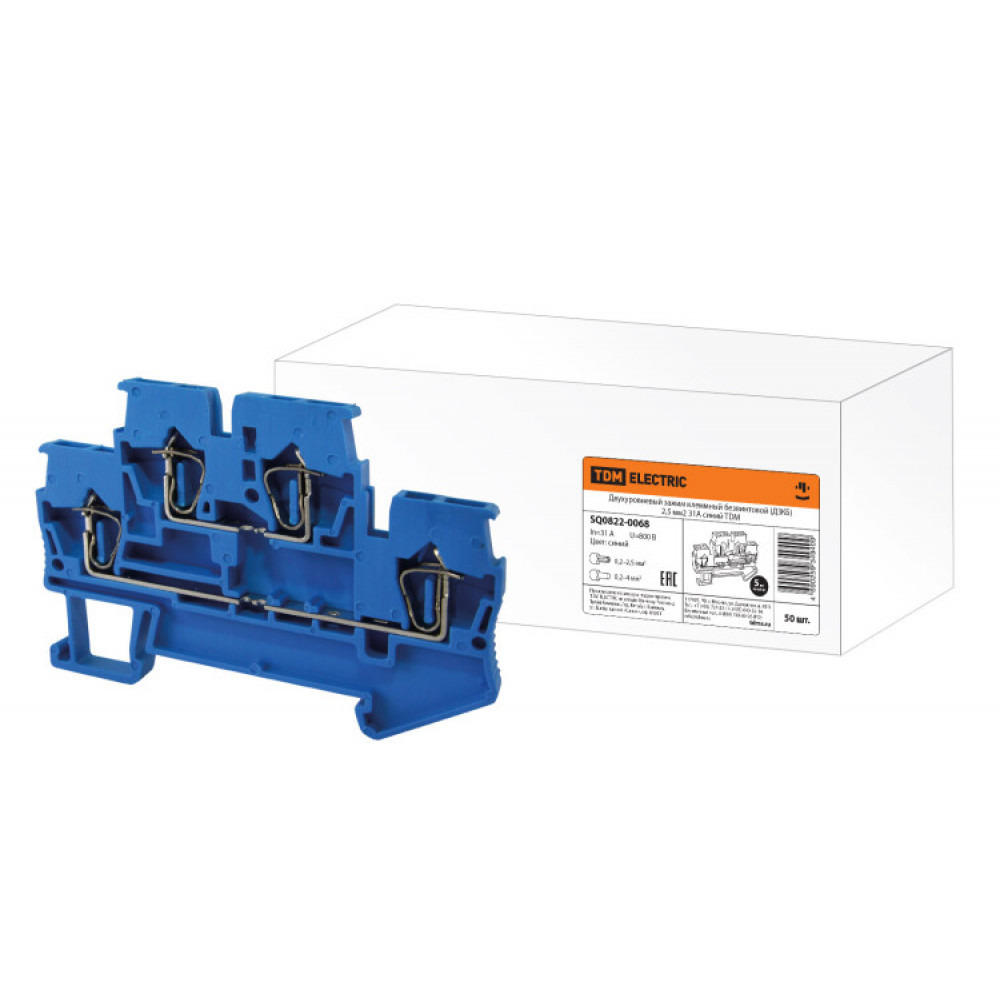 Двухуровневый зажим клеммный безвинтовой (ДЗКБ) 2,5 мм2 31А синий SQ0822-0068, Клемма на DIN-рейку