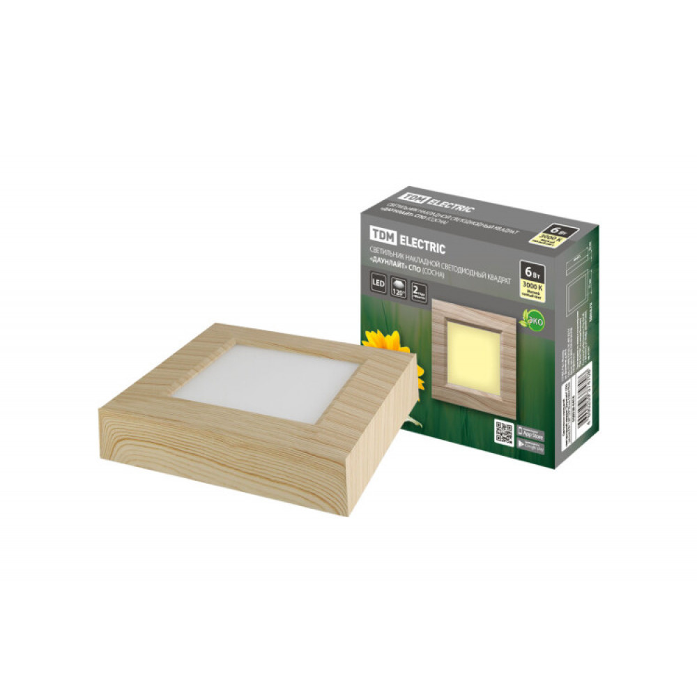 Описание Светильник накладной светодиодный квадрат "Даунлайт" СПО (сосна) 6 Вт 120*120*32 мм 3000К SQ0329-0418