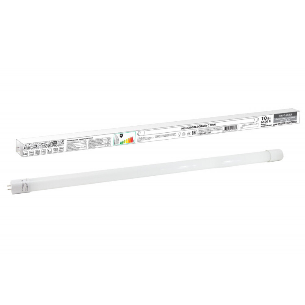 Описание Лампа светодиодная НЛ-Т8-10 Вт-230 В-6500 К–G13, 600 мм, матовая, стекло, непов. Народная SQ0340-1502