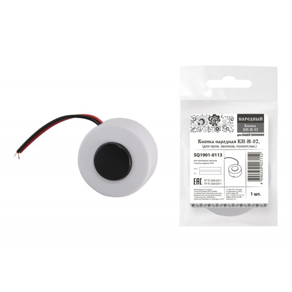 Кнопка Народная КП-Н-02 (для пров. звонков, полиэт.пак.) SQ1901-0113, Звонок электроустановочный