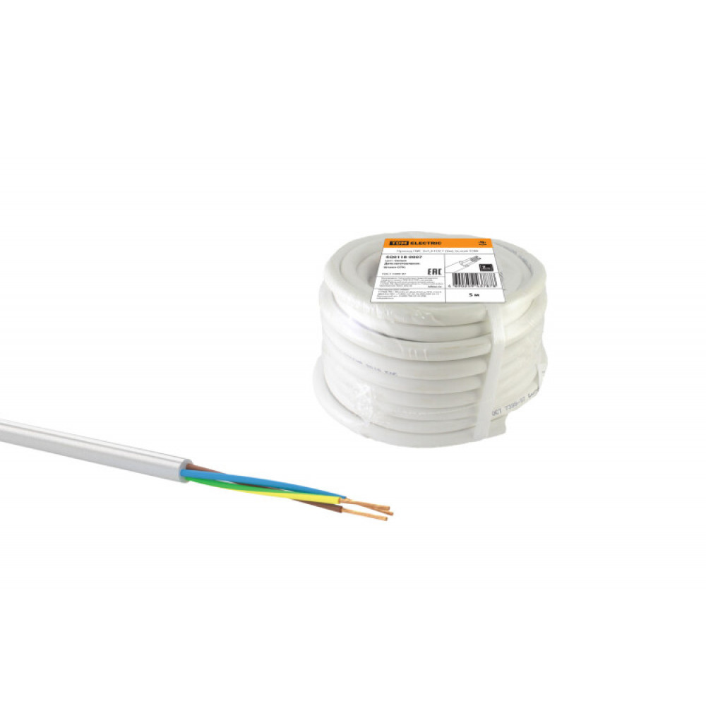 Описание Провод ПВС 3х1,5 ГОСТ (5м), белый SQ0118-0007