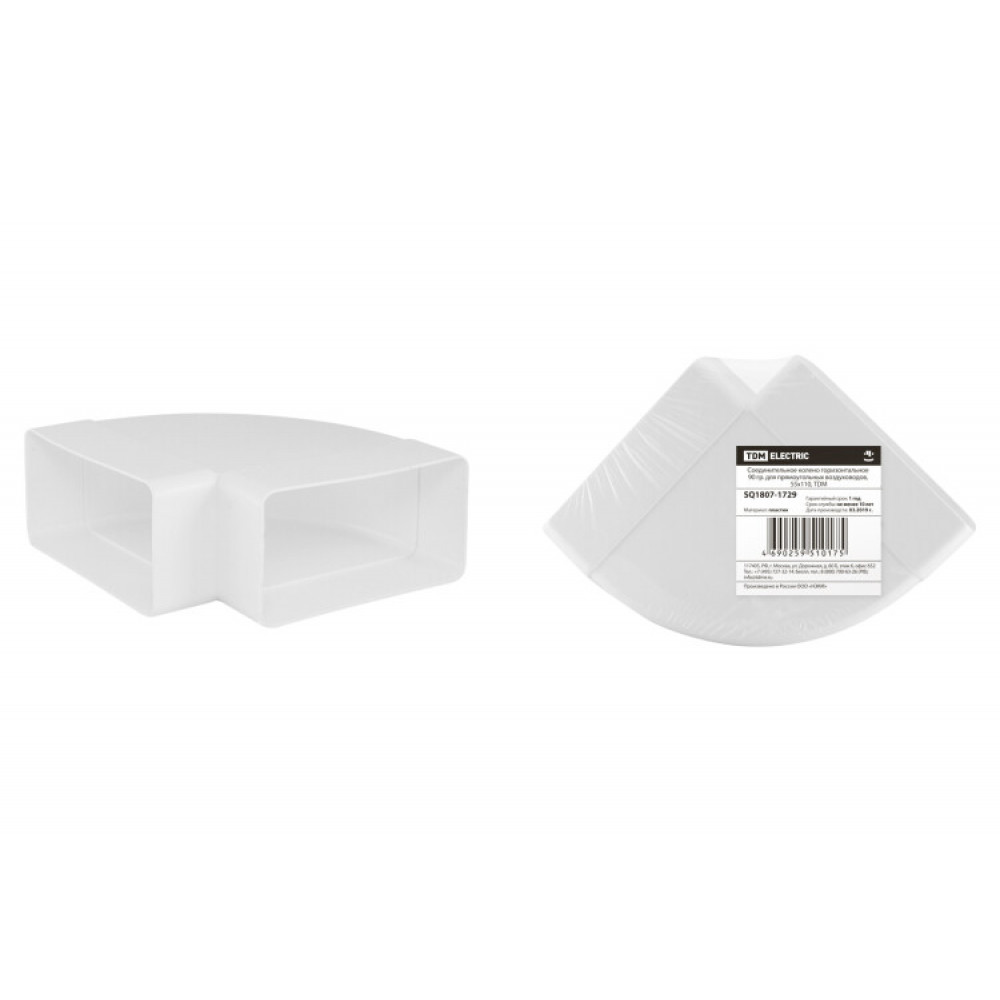 Соединительное колено горизонтальное 90 гр. для прямоугольных воздуховодов, 55х110, SQ1807-1729, Система вентиляционная