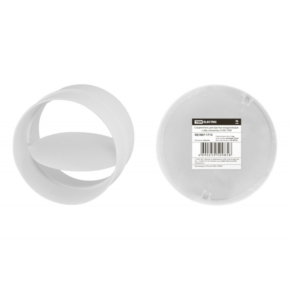 Соединитель для круглых воздуховодов с обр. клапаном, D100, SQ1807-1713, Система вентиляционная