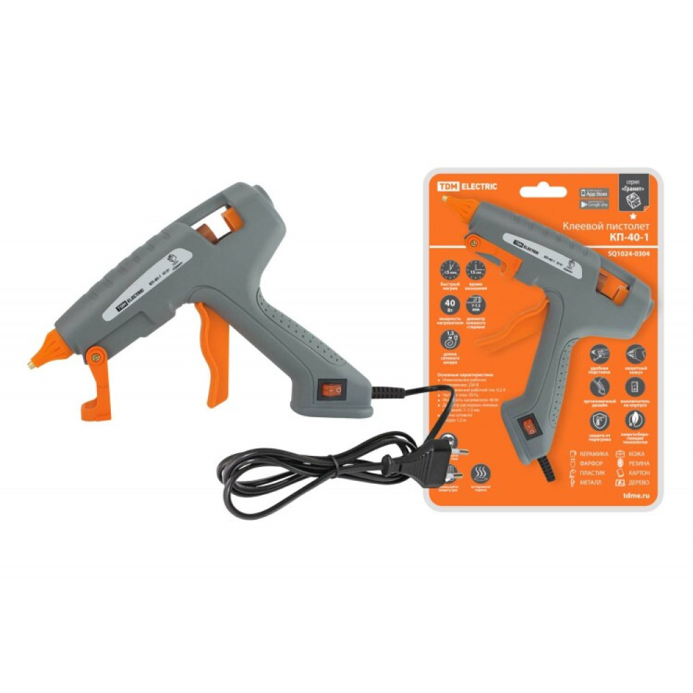 Описание Клеевой пистолет КП-40-1, 7 мм, подставка, выключатель, шнур 1,3 м, 40 Вт, Т=220 С "Гранит" SQ1024-0304
