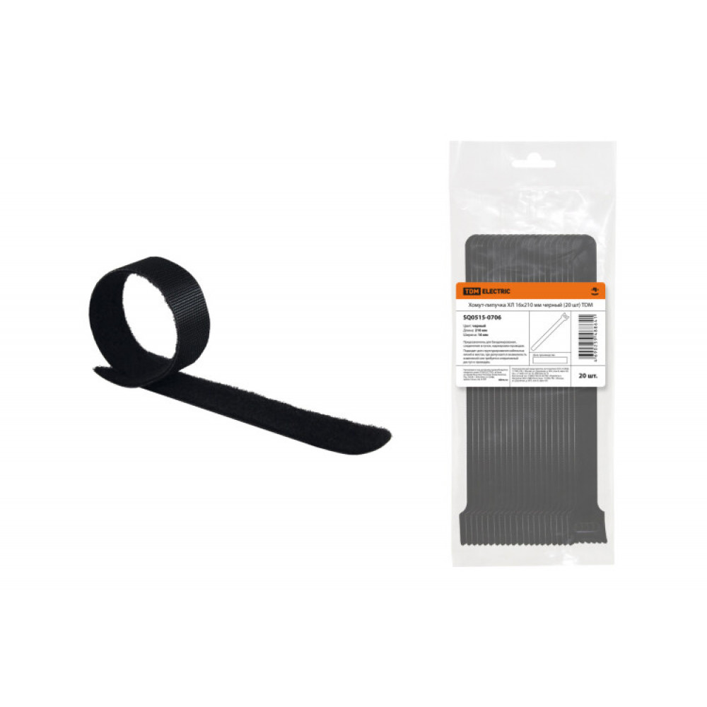 Описание Хомут-липучка ХЛ 16х210 мм черный (20 шт) SQ0515-0706