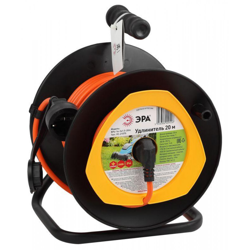 Удлинитель силовой RPx-1e-3x1.5-20m на пластиковой катушке c заземлением 20м 1 розетка ПВС 3х1.5мм2 Б0046837, Удлинитель, сетевой фильтр