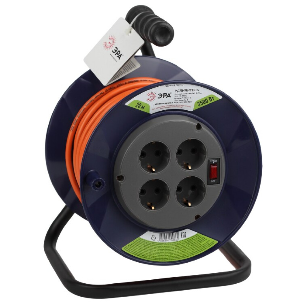 Удлинитель силовой RPx-4es-3x1.5-20m на пластиковой катушке c заземлением 4 розетки 20м ПВС 3х1.5мм2 Б0046849, Удлинитель, сетевой фильтр