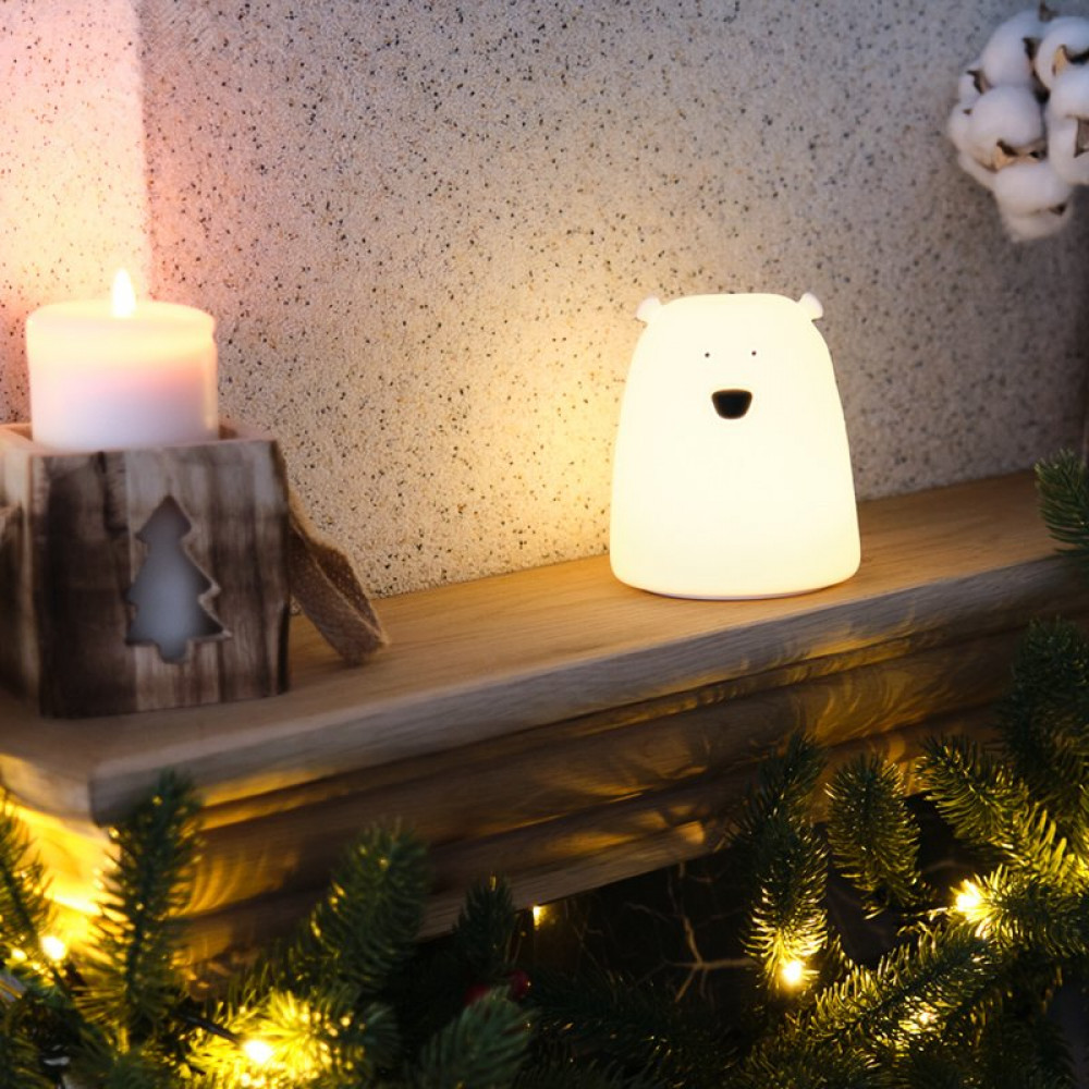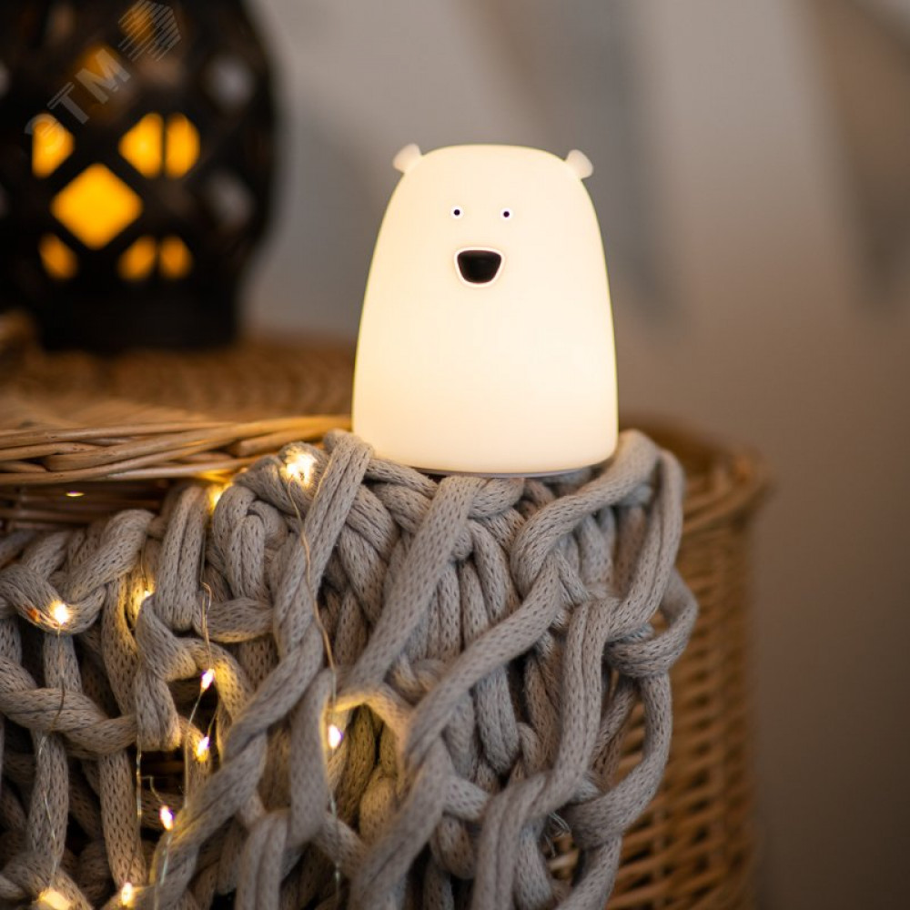 Беспроводной силиконовый ночник ''Медвежонок'' — безопасный, экономичный, функциональный интерьерный декор, который обязательно понравится вашему ребенку. Милый забавный персонаж выполнен из мягкого силикона. Материал приятен на ощупь и не имеет посторонних запахов. Ночник работает от 3 батареек типа ААА, кнопка ON/OFF находится в нижней части. Режимы переключаются легким хлопком по корпусу. Предусмотрены следующие опции - плавная смена цвета, постоянное свечение теплым белым или одним из цветных вариантов. Функция энергосбережения выключает ночник через час после начала работы.