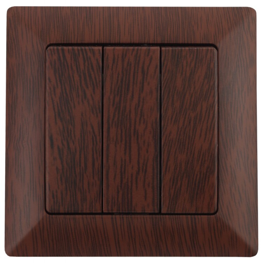Описание 4-106-10 Выключатель тройной, 10А-250В, СУ, Solo, венге (10/200/2400) Б0043303